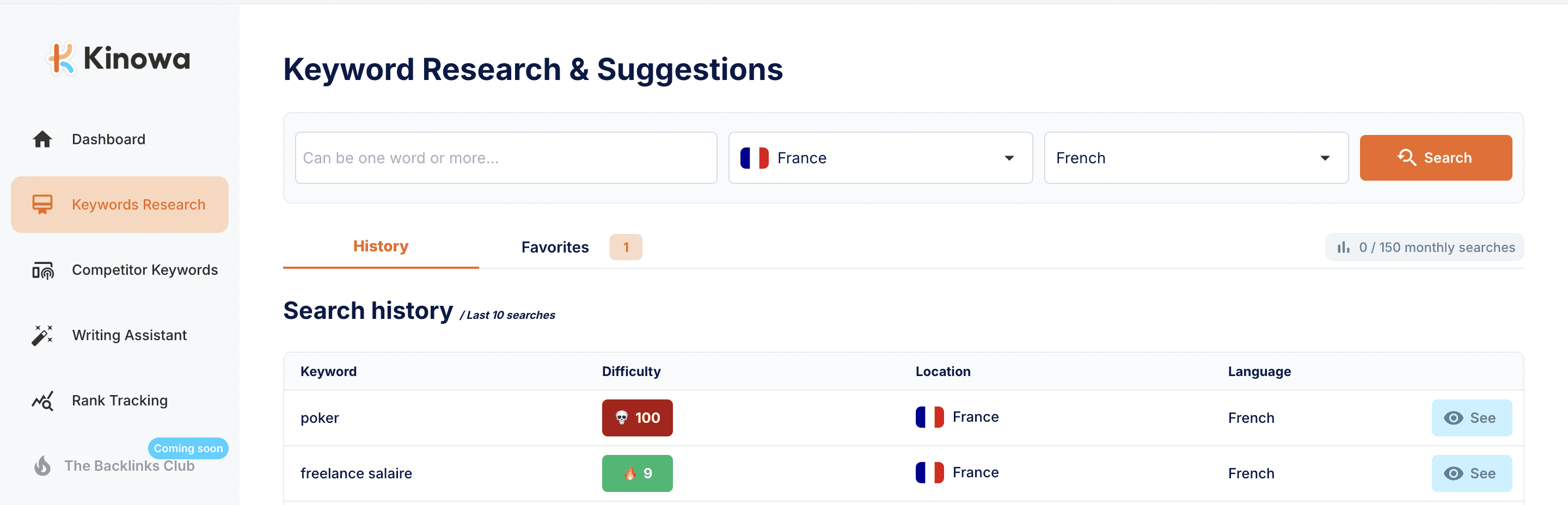 Sur mon application Kinowa, j'ai utilisé le code couleur de l'app pour styler mes CTA. On peut voir ici que le bouton "search" est en orange, couleur principale, car c'est l'action principale de l'onglet.
